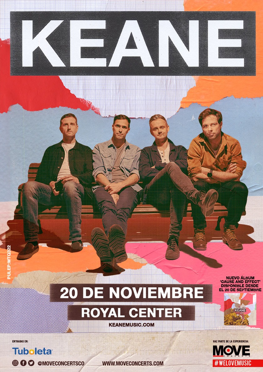 KEANE, una de las bandas inglesas más importantes de Rock alternativo, regresa a Colombia luego de una década. El concierto será el miércoles 20 de Noviembre en el Royal Center en Bogotá. En el marco de su gira mundial, KEANE ha programado presentaciones en Estados Unidos, Europa y Sudamérica, siendo Colombia el primer país en la región.