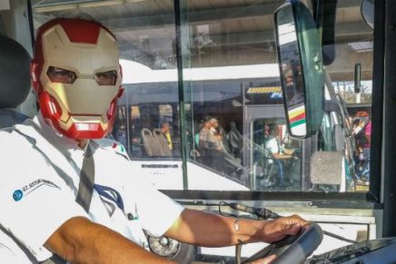 Por ejemplo, con máscara de Iron Man, uno de los héroes insignia del universo Marvel, los conductores posaron para las redes sociales del servicio de transporte.