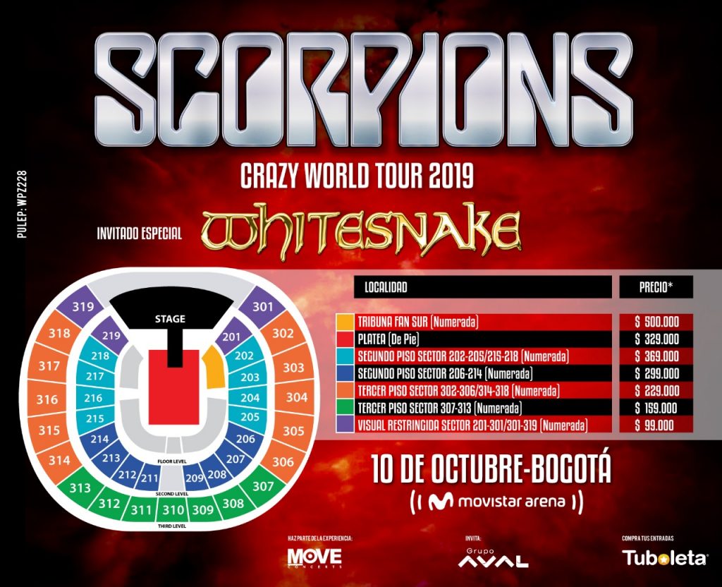 PRECIOS SCORPIONS CRAZY WORLD TOUR BOGOTÁ