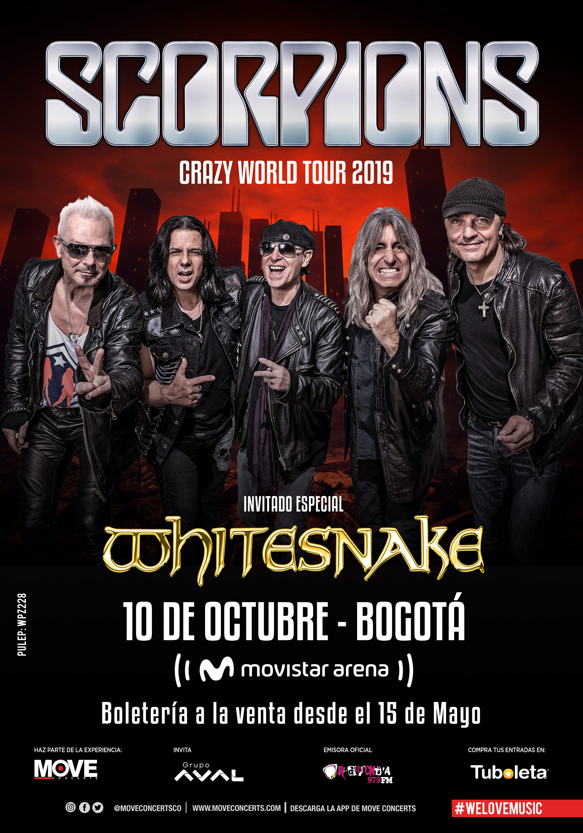 Scorpions, la banda de Hard Rock más importante de Europa Continental, vuelve a picar de Nuevo en Bogotá. Esta vez soltarán todo su poder en la Movistar Arena, en el marco de su gira Crazy World Tour.