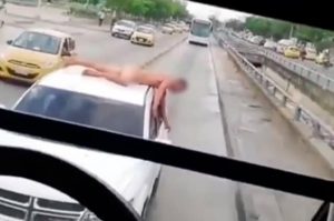 Recientemente, se volvió viral en las redes sociales un video grabado en Barranquila, en el que se ve a un hombre totalmente desnudo encima de una camioneta en movimiento.