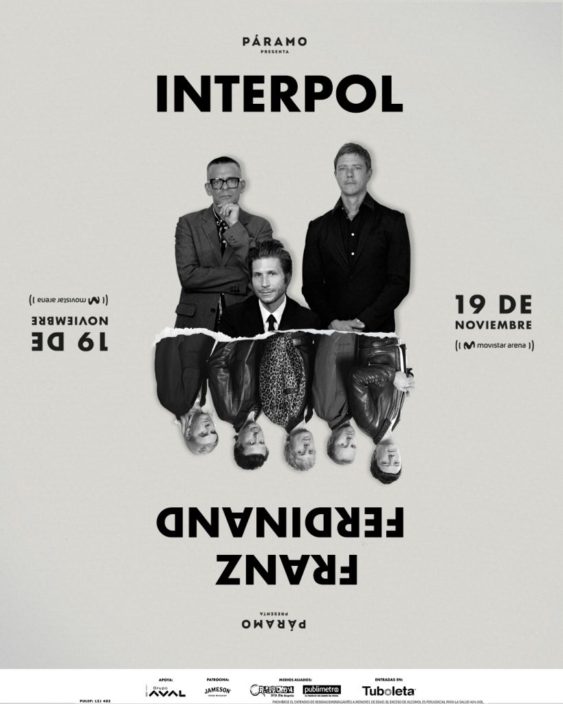 La noche del 19 de noviembre Bogotá se convertirá en el centro del universo indie cuando dos de sus planetas más brillantes compartan tarima en una noche esencial: Interpol y Franz Ferdinand en concierto. La Preventa Exclusiva para clientes de los Bancos AVAL se abrirá el 9 de septiembre para compras con tarjeta de crédito. El miércoles 11 de septiembre iniciará la venta para Público General con todos los medios de pago. Entradas en TuBoleta.