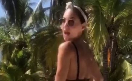 Con un radiante sol y bañada en bronceador, la modelo prendió la música y al ritmo de la conocida “a mover la colita” pues le hizo caso a la letra de la canción para mover sus atributos.