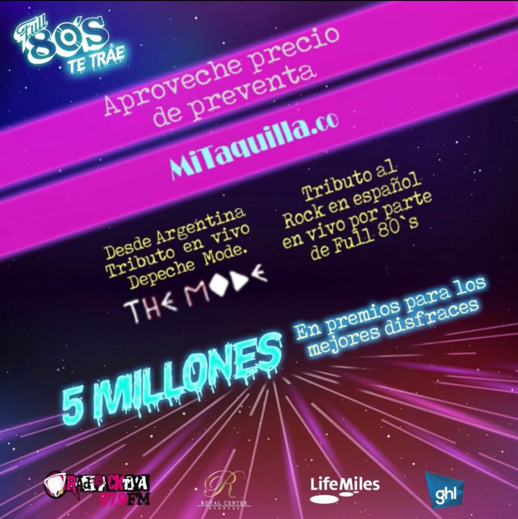 La banda Full 80’s con lo mejor del rock en español y The Mode, un tributo argentino a Depeche Mode, serán los encargados de poner la música y hacernos bailar toda la noche en una fiesta que entregará más de 5 millones en premios para los mejores disfraces.