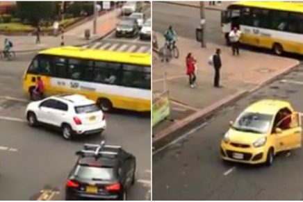 Un video publicado en redes sociales muestra como un valiente taxista, al comienzo del clip, se enfrenta con otro conductor, quien aún permanece dentro del bus cuando le rompen el espejo, y ahí es cuando la escena se pone un poco difícil para el conductor del taxi.