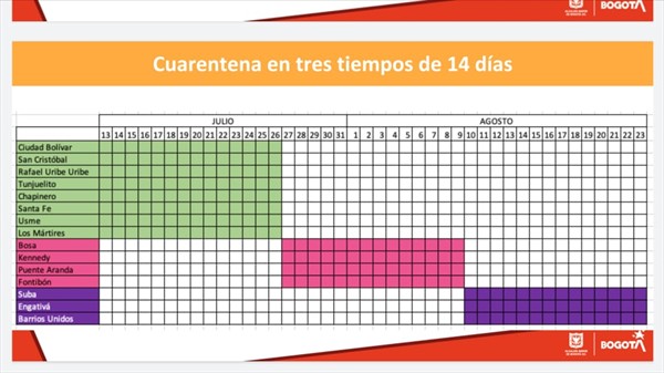 Luego de la reunión que sostuvo la alcaldesa Claudia López con el Ministerio de Salud en el PMU por el acelerado incremento de contagiados por coronavirus en la capital del país, se definió que Bogotá entrará en cuarentena sectorizada desde el próximo 13 de julio hasta el 23 de agosto.