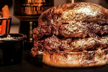 La hamburguesa está bañada en oro de 24 kilates totalmente comestibles, y aparte de eso, cuenta con pan brioche, cebolla crispy, doble carne, doble queso y tocineta, algo que la hace llamativa, hasta que todos conocen su precio.