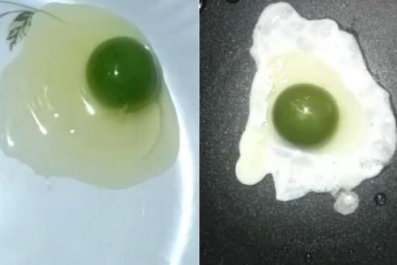 La gallina, siguió poniendo huevos con yema verde, razón por la que el granjero decidió incubarlos para ver el resultado: seis pollitos que cuando crecieron también pusieron huevos con la misma particularidad.