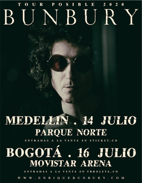 El cantante, compositor y músico español Enrique Bunbury regresa a Colombia en el marco de su gira mundial BUNBURY 2020 en la cuál visitará varias ciudades en Latinoamérica y Europa.
