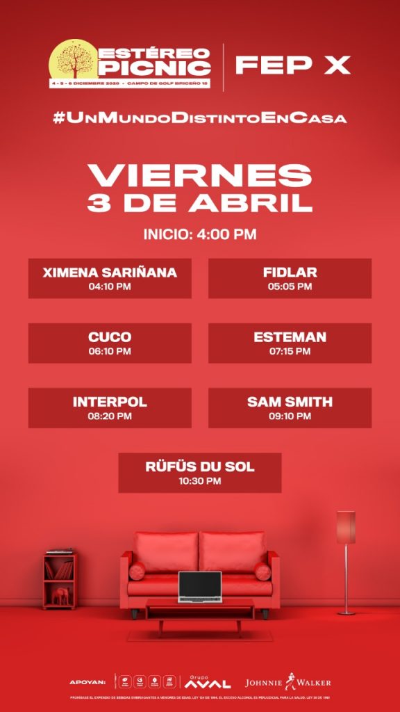 Este 3, 4 y 5 de abril, fecha en la que inicialmente se había programado el Festival Estéreo Picnic antes de la alerta mundial del COVID-19, viviremos lo que será la versión desde nuestra casa, es decir, disfrutaremos de la décima edición del festival en la comodidad del hogar.