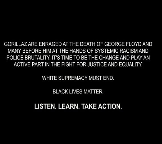 “En Gorillaz estamos enfurecidos por la muerte de George Floyd y muchos antes que él por el racismo sistémico y la brutalidad policial”.