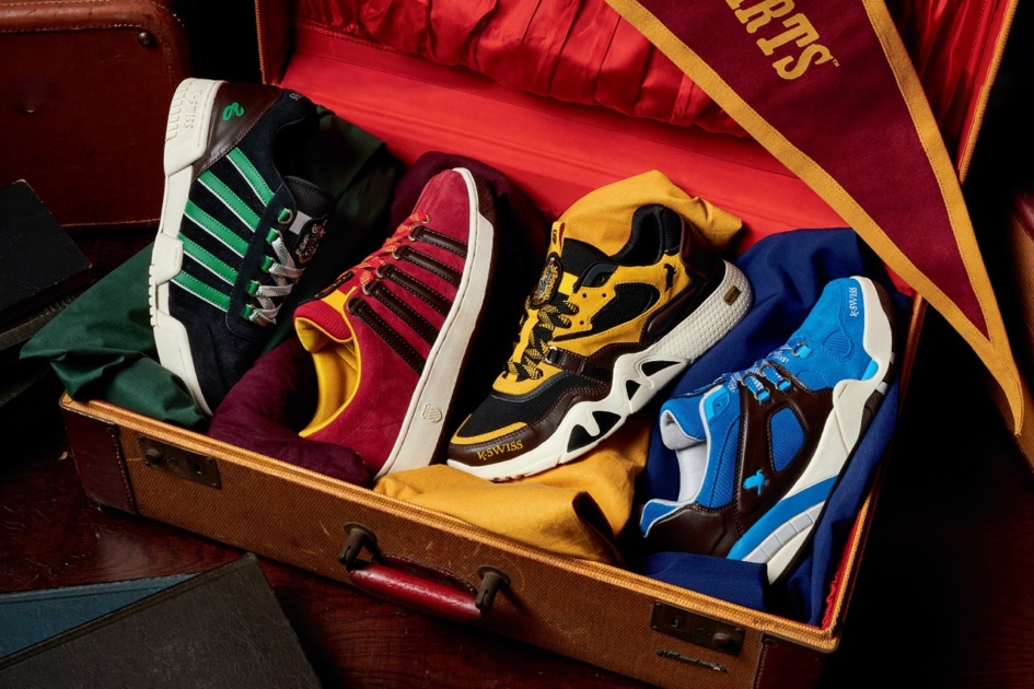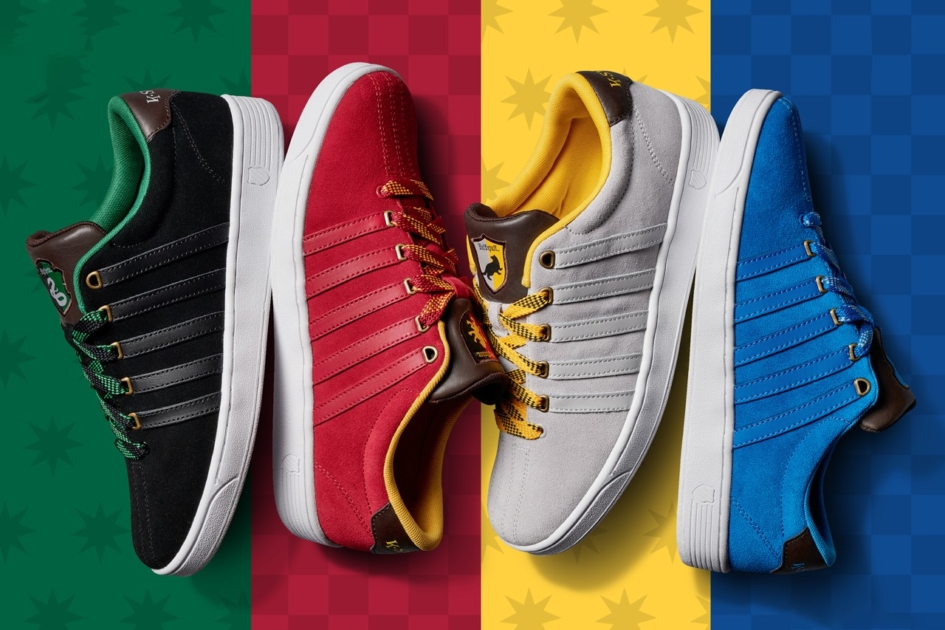 La empresa estadunidense de calzado K-Swiss lanzó una nueva línea de tenis inspirados en las casas del Colegio de Arte y Hechicería, llamada ‘Back to Hogwarts’.