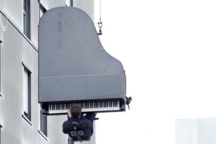 Se volvió viral en las redes sociales un video en el que se ve al músico suizo Alain Roche ofrecer un concierto de piano a los vecinos de la de la ciudad francesa de Nantesm, mientras está colgado a más de 40 metros de altura en una grúa.