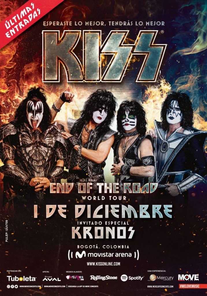 Después de un complejo y arduo proceso de reorganización de toda su gira de despedida ‘End Of The Road Tour’ y teniendo en cuenta la seguridad de todos los fans, KISS, Move Concerts y Mercury, anuncian la nueva fecha en Bogotá, el concierto se realizará el martes 1ro de diciembre de 2020 en el Movistar Arena.