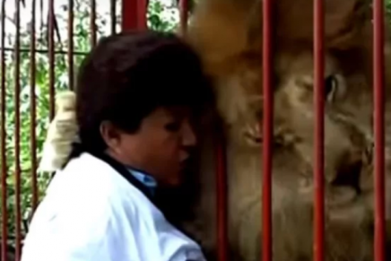 Se volvió viral en las redes sociales un emotivo video en el que se ve al león Júpiter, abrazar a su cuidadora Ana Julia Torres.