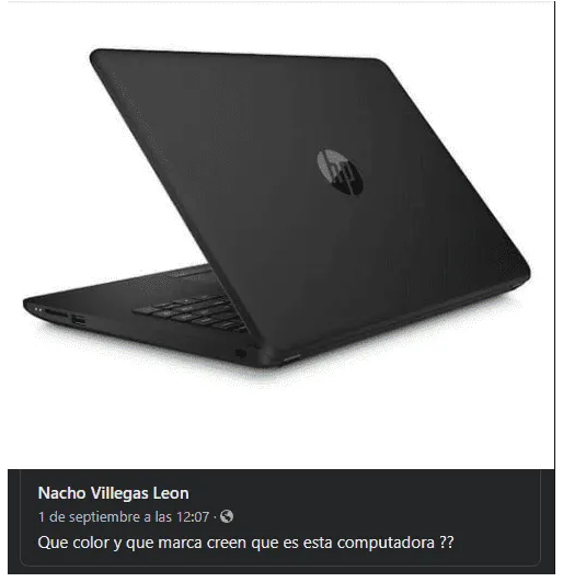 “¿Qué color y qué marca creen que es esta computadora?”, pregunta la publicación, por eso todo aquel que responda “Negra HP” se enfrentará a los bloqueos de Facebook, los cuales toman el comentario como ofensiva y racista.