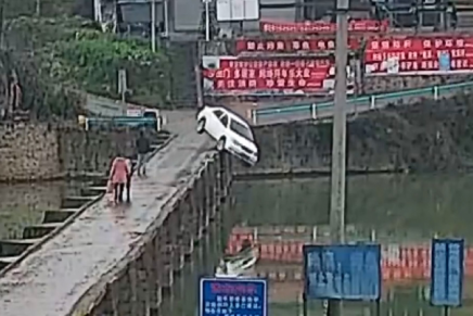 Un conductor chino identificado por su apellido Zhang, cayó junto a su auto a un río, momentos después de aprobar un examen de conducción.