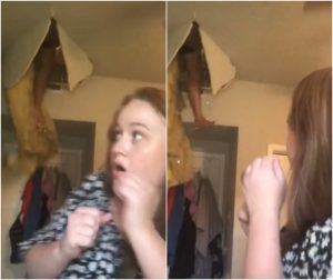 Resulta que mientras ella estaba grabando, su madre estaba en el ático de su casa y al pisar una parte que no se encontraba muy estable, terminó rompiendo el techo de la habitación de Liz y su pierna quedó colgando, lo que se evidenció en pleno video.