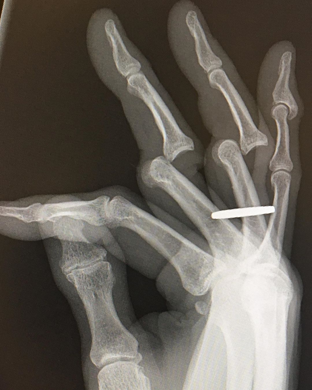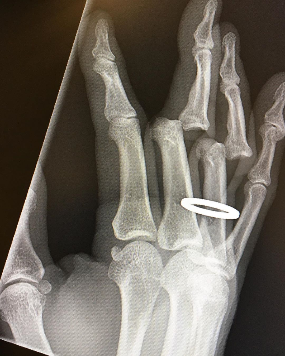 “Acabo de recibir mis radiografías. Tuvieron que cortarme el anillo antes de devolver mis huesos a su posición vertical. Todavía mis dedos están adoloridos, rígidos e hinchados, pero los puedo usar. Y todavía amo mi trabajo “.