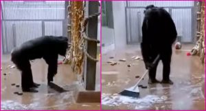 Según se afirma en la publicación de Facebook en donde se compartió el video, algunos trabajadores del Zoológico olvidaron una escoba en la jaula del primate, por lo que el chimpancé decidió cogerla y limpiar el piso y las ventanas del lugar con agua y jabón.