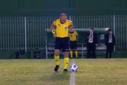 Antes de dar el pitazo inicial del partido, el juez creyó que nadie lo estaba viendo, así que acomodó todo para poder orinarse mientras se mantenía de pie en la mitad del campo.