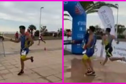 El video que le dio la vuelta al mundo nuestra como el atleta ya se acerca a la meta para convertirse en el ganador, pero antes de llegar, celebró antes de tiempo su triunfo con algunos pasos de baile, eso sí, no contaba con que Germán Cister, también participante, lo llevaba a contadas milésimas de segundos.