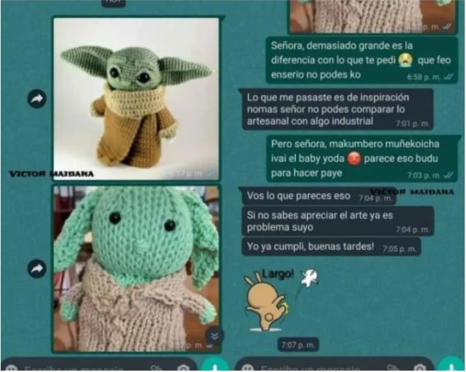 resulta que un usuario quería comprar un Grogu tejido que había visto en internet, el cual le pareció algo llamativo, pues el muñeco venía tejido, sin duda una manera diferente de tener al personaje de ‘The Mandalorian’.