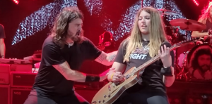 Una vez más Dave Grohl y compañía cumplen el sueño a uno de sus fans, a quien invitan al escenario para interpretar alguna canción de la banda en pleno concierto.