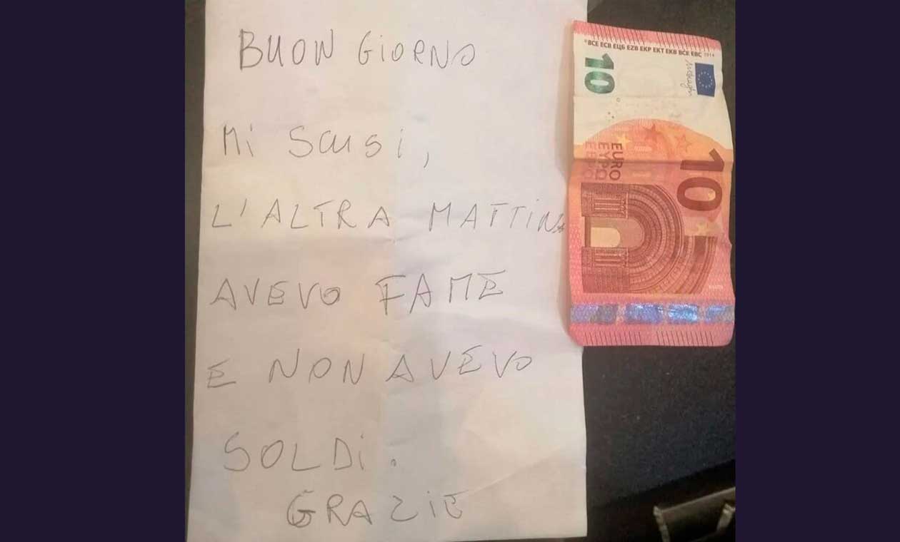 “Buenos días. Perdón, la otra mañana tenía hambre y no tenía dinero”, escribió en sus disculpas.