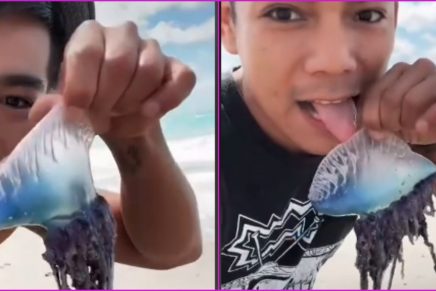 Como se puede evidenciar en el video publicado por Alexa Reed, protagonista de la escena, el implicado descubrió el animal llamado ‘Physalia physalis’ o ‘carabela portuguesa’ en la mitad de la playa, y decidió sostenerlo y lamerlo en dos ocasiones.