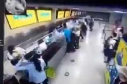 El sujeto, que desató su ira contra la aerolínea de Viva Air en Cartagena, se alejó del cubículo para tomar lo que parece una de las barras de la fila. Después, agarró su equipaje de mano y emprendió contra la pantalla de vuelos.