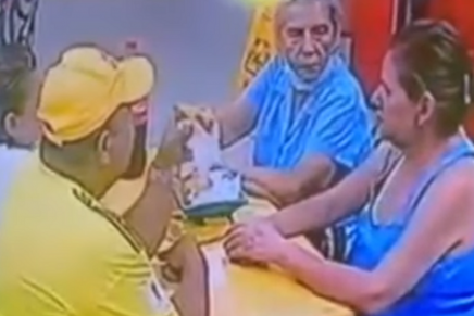 La cámara de seguridad grabó la escena completa desde que la familia disfrutaba de su comida, hasta que en un momento una de las mujeres le pasa un pelo disimuladamente a su familiar; ella, aprovechando que ninguno de los meseros está mirando, pone el pelo dentro de la arepa para hacer el reclamo.