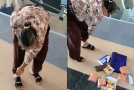 En redes sociales ha circulado un video donde se ve a la mujer, de 65 años, sacando varios paquetes de salchicha y otras bolsas de alimento que escondió hábilmente entre su pantalón. En el mismo, se escucha a un agente de policía decir con sorpresa que fueron más de diez productos que la señora pretendía robar, por lo que tendría que judicializarla.