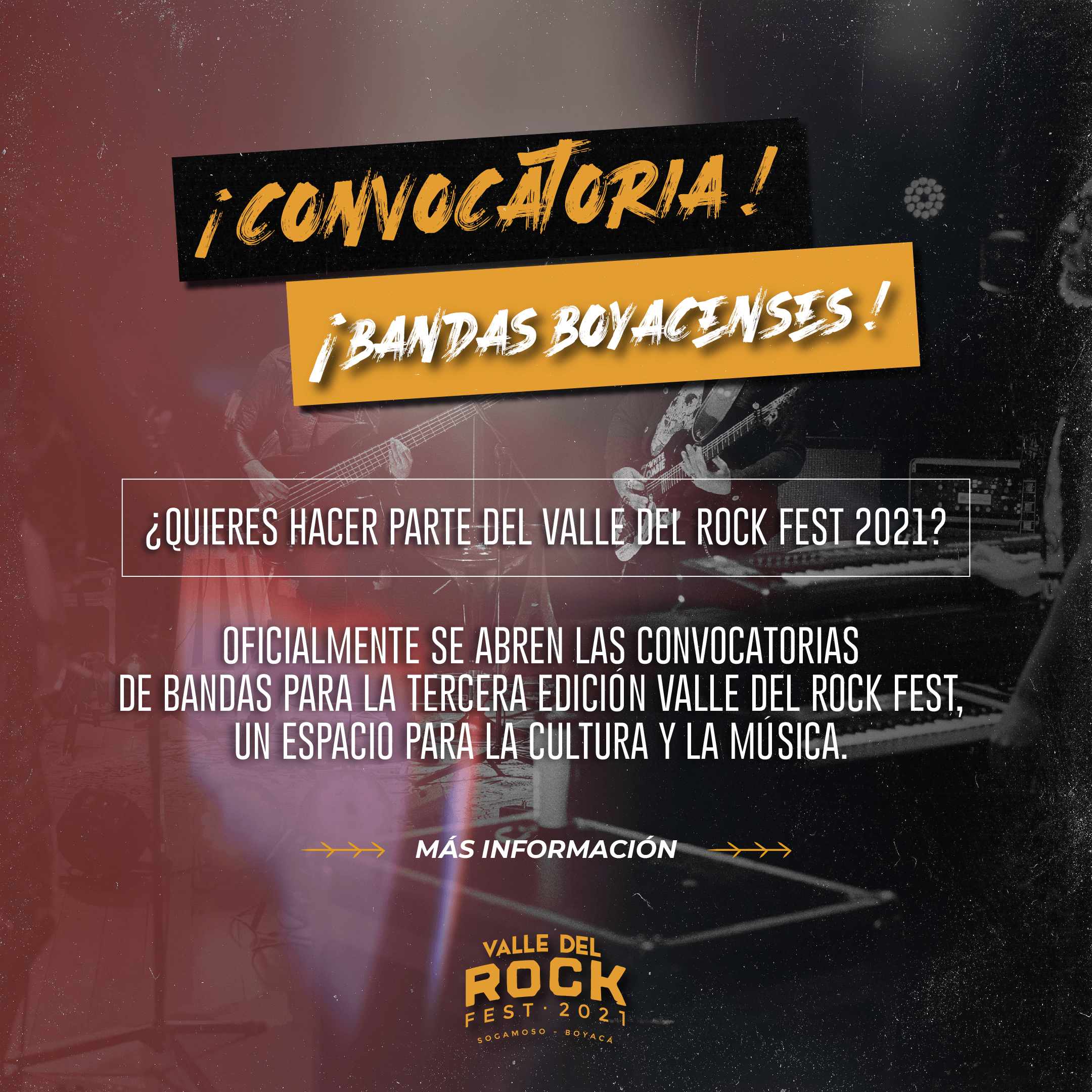 Para su tercera edición, el Valle del Rock Fest se encuentra adelantando la Convocatoria de Bandas Locales y Departamentales, con la que se busca visibilizar el talento boyacense a nivel regional y nacional para crear un espacio dedicado a la cultura y la música.