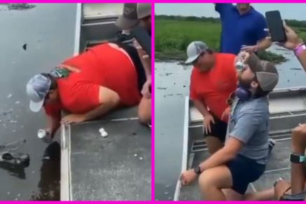 El video que se conoció a través de la cuenta de Twitter @selfpr0tect muestra cómo un grupo de personas está sobre una pequeña embarcación mientras pasean por lo que parece ser un embalse, y aprovechando la presencia del animal, pues uno de los sujetos lo coge como un destapador.