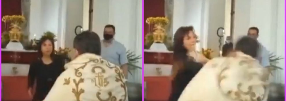 (VIDEO) Mujer golpea a un sacerdote en plena misa de Semana Santa