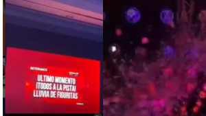 Al inicio del clip aparece en la pantalla un aviso que dice: “¡Último momento! Todos a la pista Lluvia de Figuritas”.