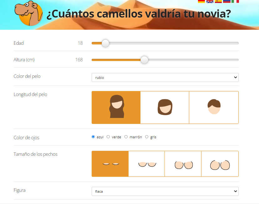 La extraña, pero interesante herramienta le permite conocer a los usuarios el valor en camellos de su pareja a partir de algunos datos sobre las cualidades física de esta persona.