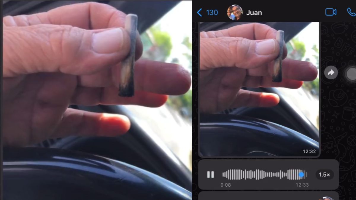 La usuaria @meeriditomasi publicó un videoclip en el que se muestra un chat con su padre quien le dejó dos curiosas notas de voz. En el chat también se aprecia que el hombre le envía una foto del ‘porro’ que halló en su camioneta y que sin saber de qué se trataba, decidió fumarlo en varias ocasiones.