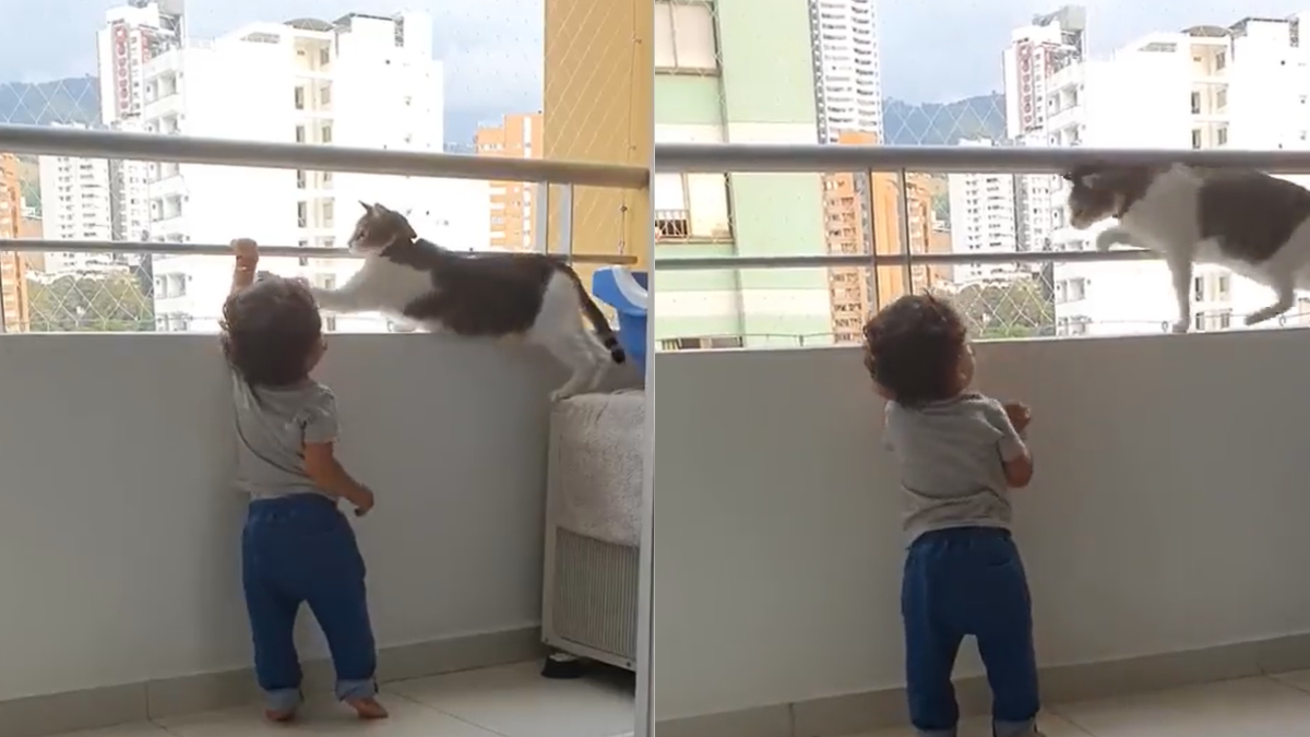 En redes sociales se volvió viral un video en el que se aprecia como un pequeño juega en un balcón con el latente peligro de alcanzarlas barandas y sufrir algún tipo de accidente. Sin embargo, allí estuvo para protegerlo y para hacer que se retirara de la orilla del balcón un gatito, que se ganó toda la admiración y elogios de parte de los internautas.