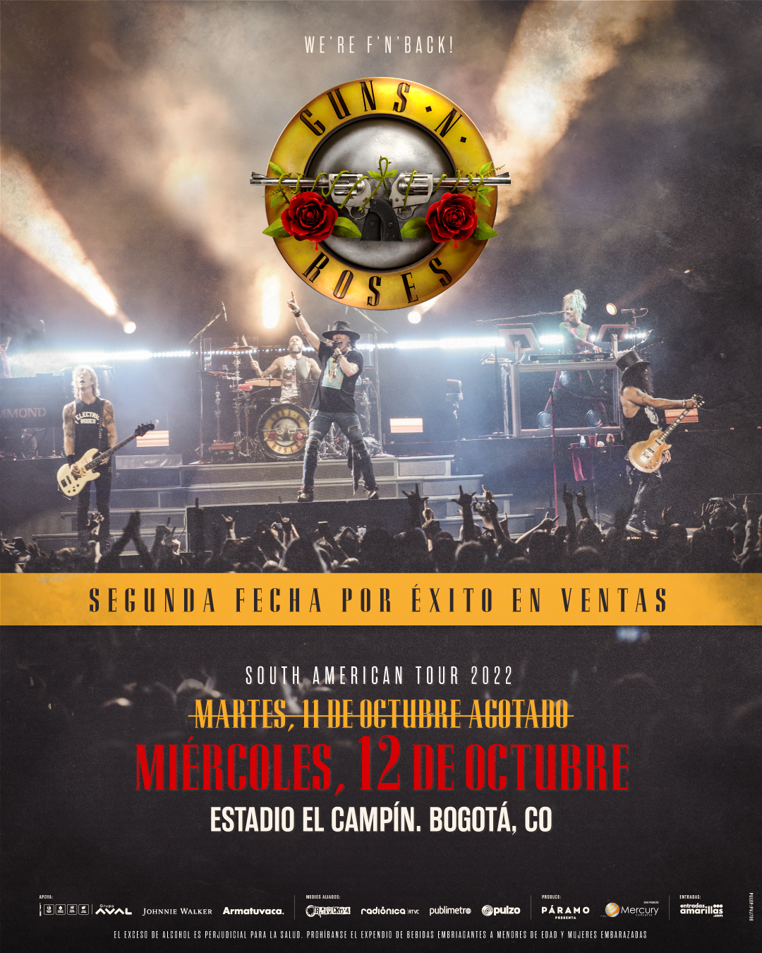 Pues bien, las súplicas fueron escuchadas y podemos confirmar que Guns N’ Roses tendrá una segunda fecha en Bogotá, Colombia. El lugar será el mismo, el estadio El Campín, y la fecha será el 12 de octubre, un día después del concierto inicial. La preventa de la boletería será el 17 de mayo para clientes del Grupo Aval y el 19 de mayo se habilitará al público en general.