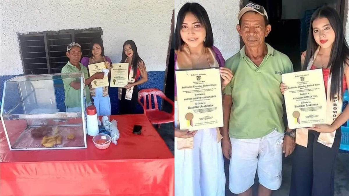 En el municipio de Sampués en Sucre, Colombia, las dos jóvenes que se graduaron de bachillerato decidieron homenajear a Rafael Villacop, el héroe sin capa que les fiaba empanadas.
