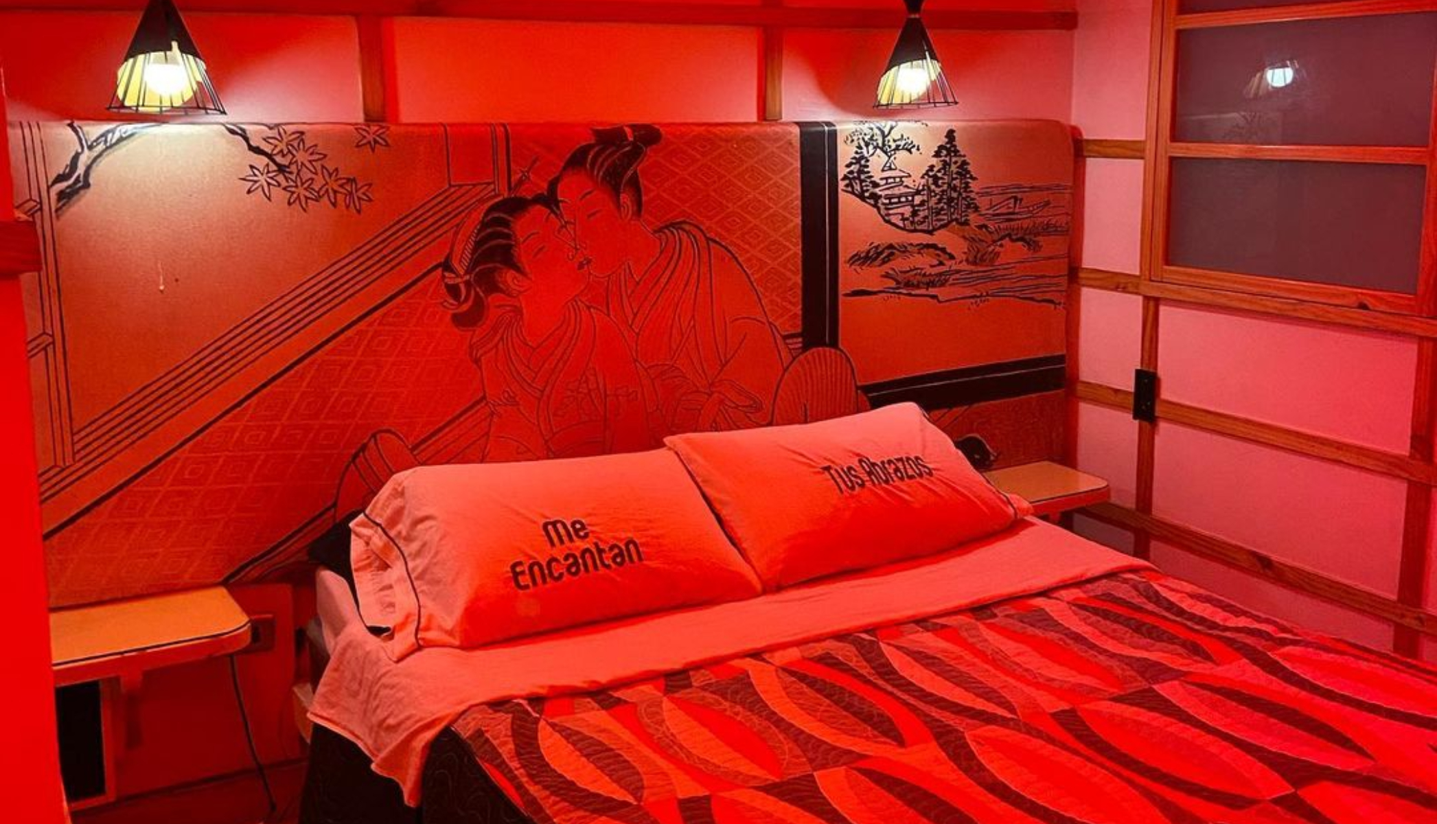 El lugar cuenta con sauna, columpio, tubo de pole dance, silla del amor y jacuzzi.