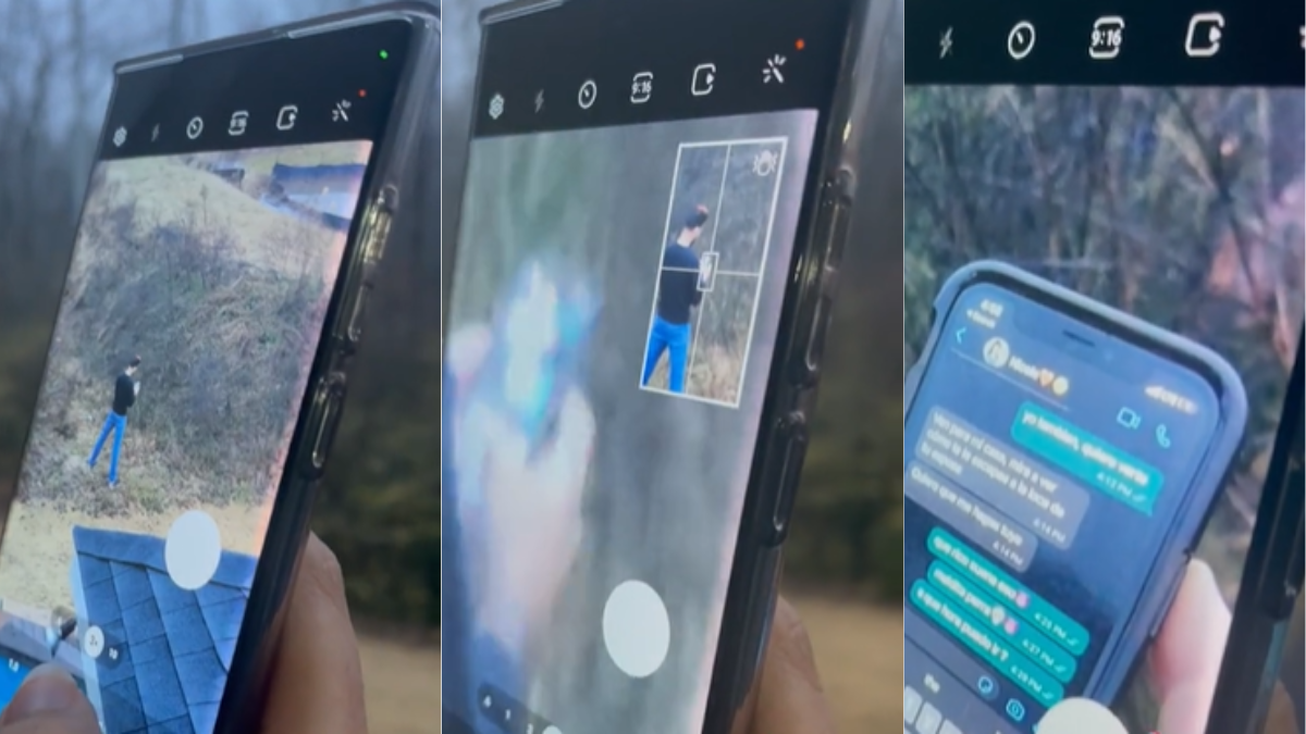 Al ver que su pareja está usando el celular, a varios metros de distancia de ella, la mujer enfocó al hombre con la cámara de su teléfono y empezó a aumentar el zoom de este con el fin de lograr ver qué estaba viendo su pareja en el celular.