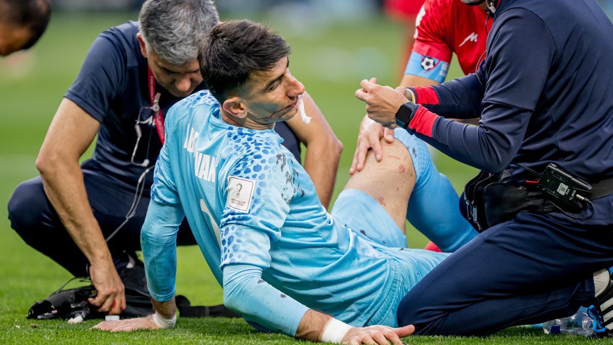 Videos del momento registraron cuando el Beiranvard chocó con el rostro del defensa Majid Hosseini, mientras se defendían de una jugada aérea de los ingleses. El equipo médico atendió al portero de 30 años, quien pareció responder al poco tiempo.