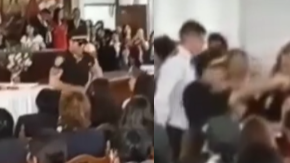En un video, que ya es viral en redes sociales, se observa a un grupo de mujeres sentadas en las sillas de una sala, mientras un grupo de tres sensuales bailarines, vestidos de policía, entran al recinto para empezar el show.