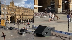La escena surrealista fue captada por la banda cartagenera Arde Bogotá, quien se encontraba en dicha plaza realizando sus respectivos ensayos previos a su concierto en la ciudad española, la cual hacia parte de su gira ‘Cowboys de la A3’. Tras percatarse del suceso no han podido evitar compartirlo con sus seguidores por medio de su cuenta de ‘X’ – antes Twitter – gracias a la coincidencia con la letra de su canción ‘Los Perros’.