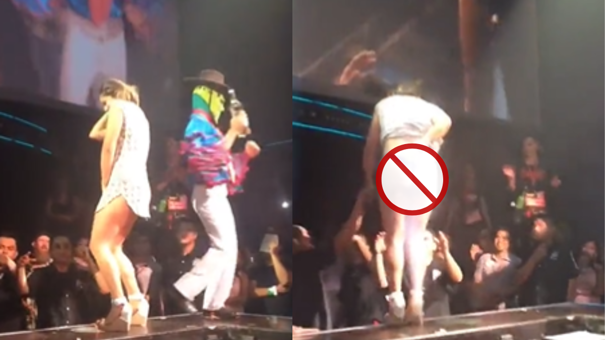 En el video, que ya suma más de 395 mil reproducciones en Twitter, quedó registrado el momento exacto en el que a una mujer se le levantó el vestido mientras estaba bailando en la barra de la discoteca junto al personaje de La Máscara.