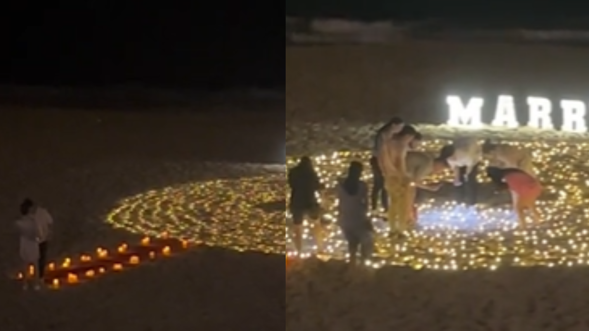 Pues el sujeto escogió la playa como el lugar perfecto para pedirle a su novia que se casara con él y, aunque organizó todo un evento con invitados y decoración para el esperado momento, no contó con lo que le podría suceder por la arena.