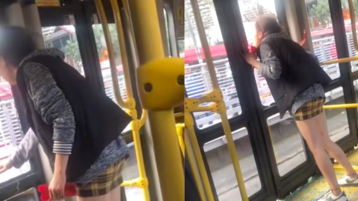 El hecho se conoció por cuenta de una pasajera que presenció el momento. La joven, identificada como Karen Martínez, compartió en TikTok el video en el que se ve a la mujer rompiendo un vidrio de una de las puertas del TransMilenio con un martillo que solo debe ser usado en casos de emergencia.